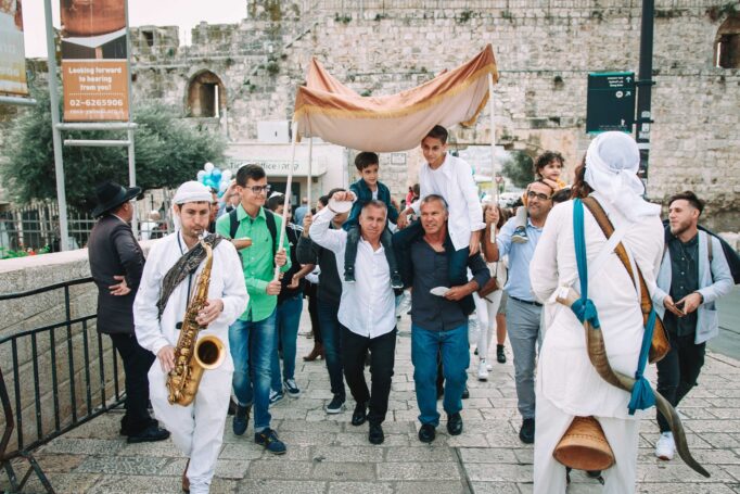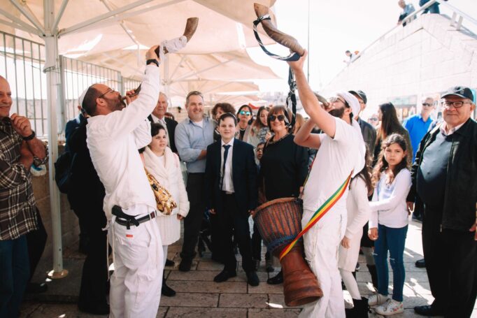 תהלוכה מתופפים ושופרות לבר מצווה בכותל