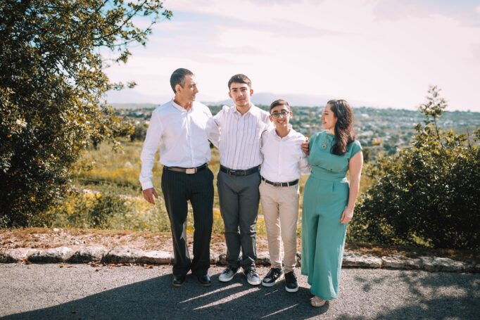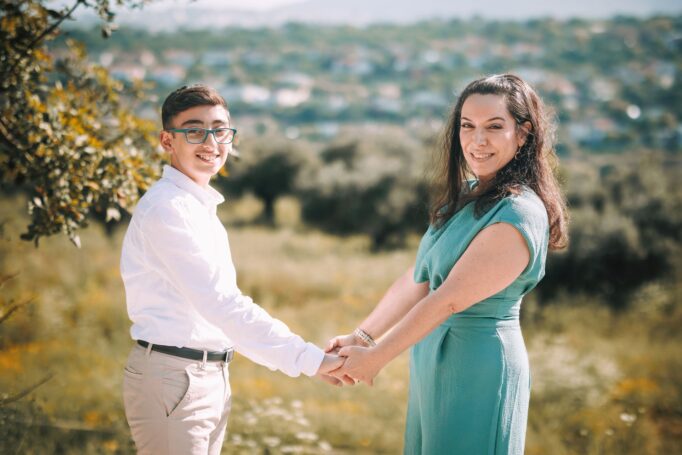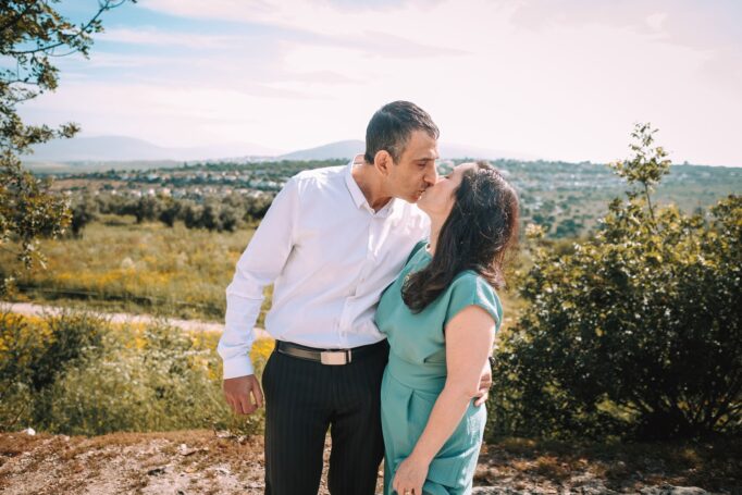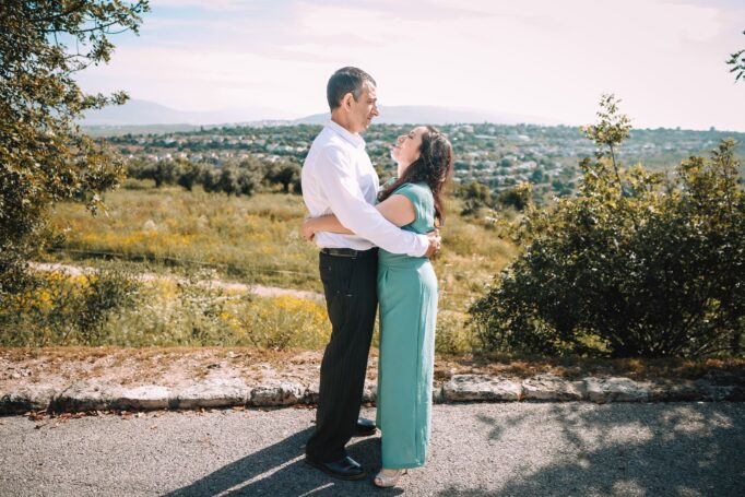 כמובן, לא שכחנו גם את הרגעים המיוחדים של אמא ואבא כזוג. כשהם עומדים מחובקים עם הנוף הפסטורלי של ציפורי מאחוריהם, ניתן לראות את האהבה והחיבור החזק ביניהם. אלו רגעים שמזכירים לנו שבבסיס כל משפחה עומדת זוגיות חזקה ואוהבת