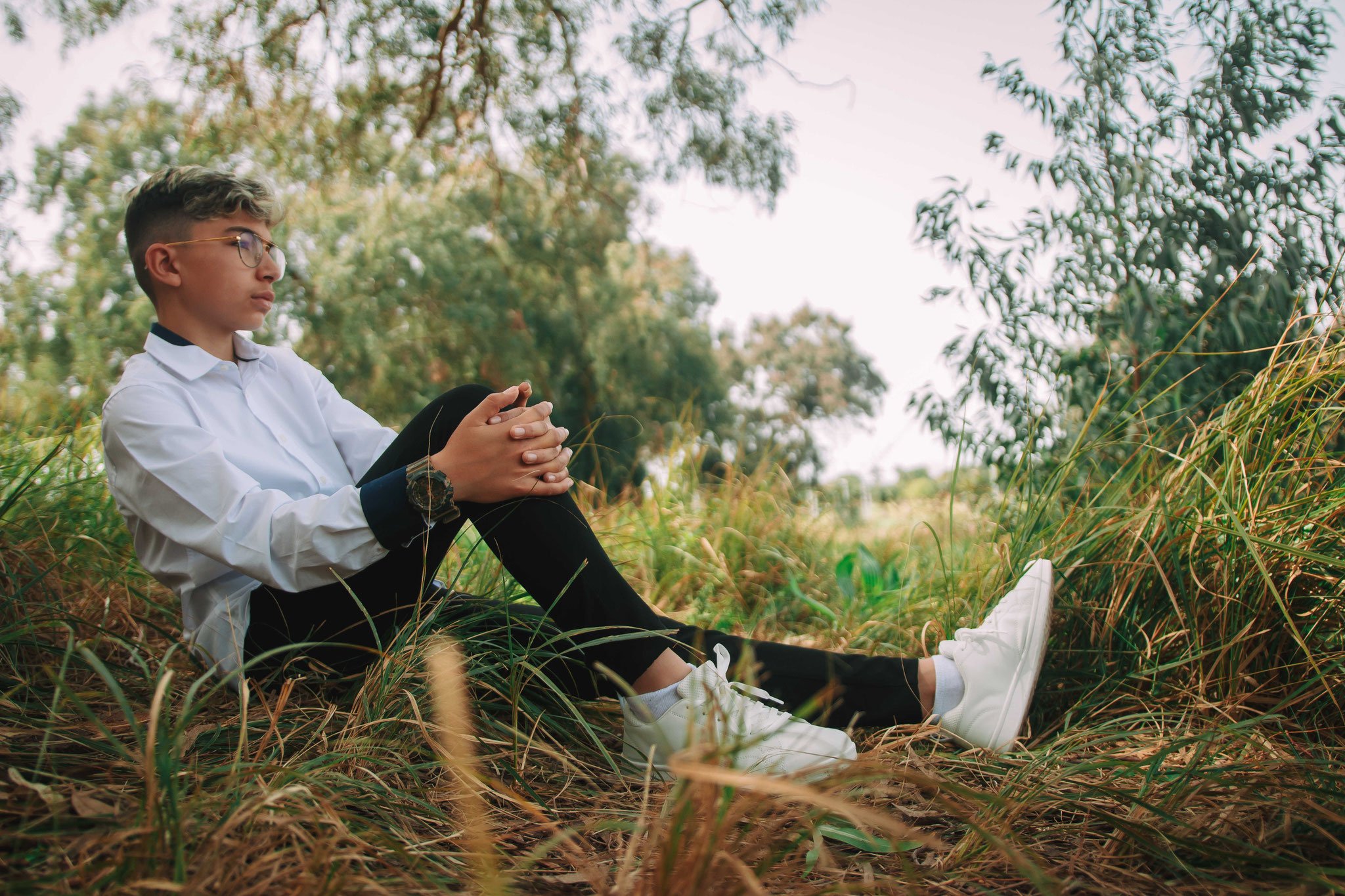 רציתי גם לשקף בבוק את הרהורי הנער, תהיותיו לגביי העתיד, ואין כמו תמונה בשלולית, בחיק הטבע כדי לעשות זאת. הנה הוא מצולם בין השרכים, אווירה של אחו, שהוא ישוב על הקרקע ואוחז בברך שמאל. זהו זמן איכות שלו עם עצמו, הטבע, כלא שם לב למצלמה, אני שם מצלם דווקא מהצד, כי זה מי שאני עכשיו- מביט בנער מהצד, לא מעורב בחיבור המקודש הזה בינו עם עצמו, הטבע והבורא. תארו לעצמיכם את ההתרגשות שאחזה בהורים שראו תמונה זו
