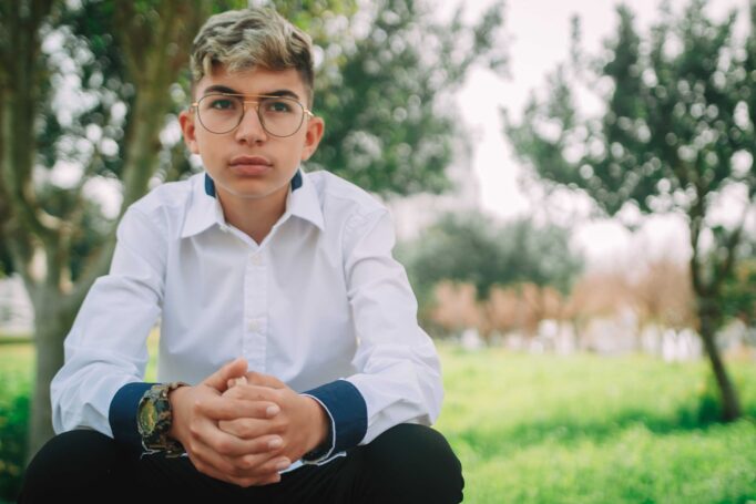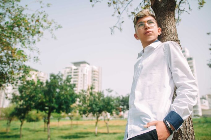 אחריי הדיאלוג והשיקוף, זמן הכלה. הנער נשען עם גבו לעץ, רגלו האחת נשענת עליו, ידיו בכיסי מכנסיו, מכיל הוא את המקום בו הוא נמצא, הדרך בה צעד, את הטקס בבית הכנסת אותו עבר בבוקר. פה בחרתי צילום רחב מהצד, צילום שתופס אותו ואת הנוף, צילום המראה מהיכן אותם מסקנות מגיעות, אני מבין את הדרך בה הלכתי, היכן אני עומד, היכן השורשים שלי. איזה תענוג יהיה לנער לראות תמונה זו ביום חתונתו עם בחירת ליבו