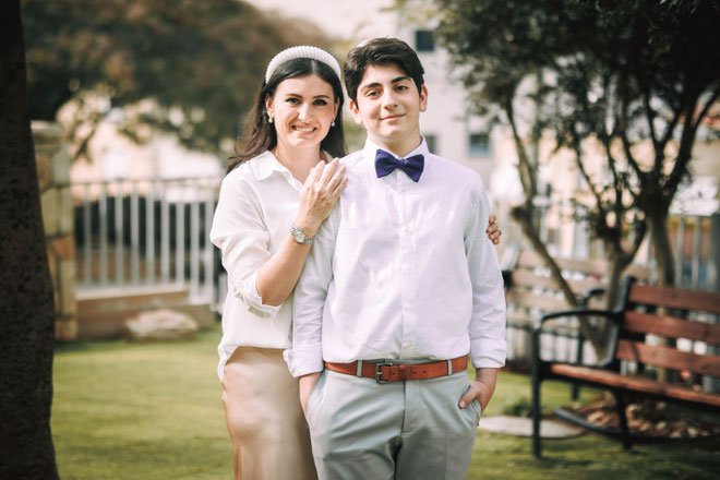 כאן בתמונה (למטה😄) רואים את חתן בר המצווה עם אמא שלו, מחייכים בשלווה ובאהבה. הגינה מספקת רקע טבעי ויפה לצילום, עם העצים והספסלים שמוסיפים לתמונה תחושת חום ורוגע. השילוב של האור הטבעי והצבעים הירוקים יוצר תמונה מרהיבה שמנציחה רגעים יקרים בצורה הכי טבעית ומרגשת שיש