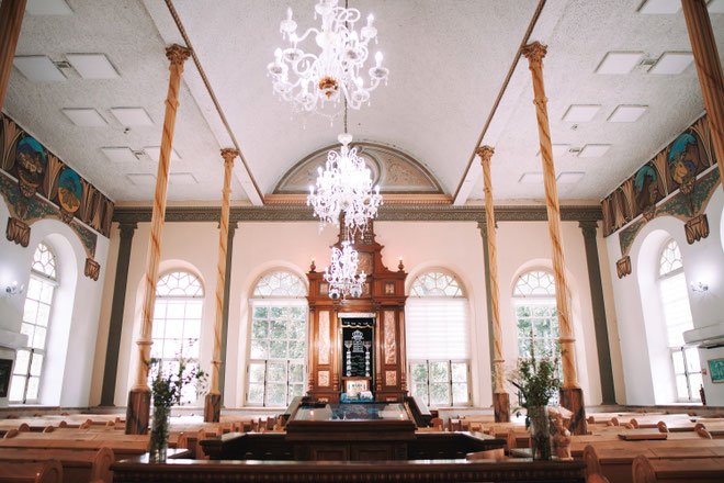 מדובר במבנה שאי אפשר להתעלם ממנו. מבחוץ, תראו דלתות עץ גדולות ומזמינות, וכל מיני עיטורים גאומטריים שמזכירים לכם שאתם במקום עם היסטוריה. מבפנים? וואו. חלונות ויטראז' צבעוניים שמכניסים אור מדהים, ארון קודש מהמם, ומנורה גדולה שתופסת את כל העין