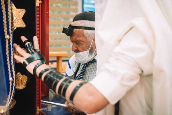 והינה אחי מסיים קריאתו וטקס העליה לתורה עומד להגיע לסיומו. אחי פה מצולם ממבט של ציפור שהוא בדרכו להחזיר את ספר התורה הקדוש אל ההיכל. איזה מרגש זה לתפוס מחדש את ממדיי הקהל הקדוש וממדיי בית הכנסת משולבים עם אחי וספר התורה ותפאורת התקרה המדהימה, אותו המגן דוד שהמנורות בזוויות שלו ברקע. אחי מכניס את הספר התורה הקדוש אל ההיכל. והתפילה בשלבי סיומה. אחי מתחיל להוריד את התפילין שעליו. איזה צילום מרגש לראות את אחי מחייך מחדש. אבן נגולה מעל ליבו, כמה חשש הוא מהעלייה לתורה והקריאה בספר הקדוש. והינה לאחר שביצע משימתו בצורה מופתית ללא רבב, באה תחושת השחרור והפורקן. אני מרגישה את התרגשותו כאילו אני יכולה להיות שם לצידו, ולהרגיש את אשר הוא מרגיש