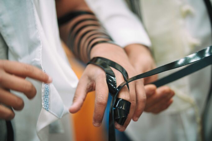 אחי האהוב נרגש, עטוף בטליתו ומתחיל להניח תפילין, סבא לצידו עוזר לו. כמה ההסתכלות בצילומים ובווידאו תורמת לי להבנת והכלת האירוע ומשמעותו שכן מעזרת הנשים יש דברים שקשה לשים לב אליהם ועכשיו כן!!. הצילום ממש ננעל על התפילין, הבית. זה הבית שלנו ששומר על דרכו של סבא והמסורת. פעולת כריכת רצועת התפילין על היד, מתרגשת אני מהצילום, זה גורם לי להפעיל את הדמיון האסוציאטיבי שלי ולהרגיש כמו עומדת לצידו של אחי, נוגעת בליבו, מרגישה את הצמרמורת העוברת בו מהתרגשות. בעוד עוזרים לאחי להניח גם את התפילין של הראש, מסתכלת אני לעברה של אימי. כולה דומעת מהתרגשות, מנחת ומגאווה