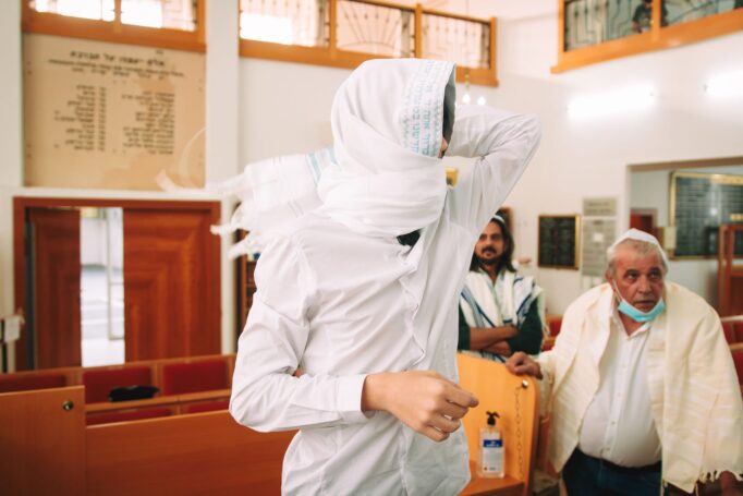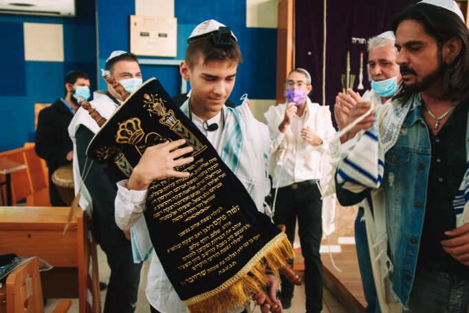 בבית הכנסת הגדול שבקרית אונו יצא לי כבר להיות כאן בתור צלם לעליה לתורה בעבר, בית כנסת הוא מקום נפוץ לחגיגות ובעיקר לצילום עלייה לתורה, והיה לי חשוב לאפיין את האירוע בהתאם למשפחה ולילד שחוגג את הגיעו לגיל המצוות. בכל פעם מחדש שאני מגיע לבית הכנסת אני מוקסם ומגלה את הצבעים שלו מחדש. בית הכנסת מעוצב כך שהכיסאות מרופדים בכריות אדומות, בית הכנסת מכיל מנורות מפוארות בקריסטלים, הארון בו שמור ספר התורה מכוסה בבד סגול, כשמעליו לוחות הברית צבועים בירוק והקיר על ידיהם משובץ בצבעים: כחול, תכלת ולבן. ברגע שהנער לבוש בטלית לבנה ועומד אל מול לוחות הברית נוצר מגוון צבעים והנער עדיין בפוקוס, התיעוד הופך למעניין יותר והתמונות למיוחדות יותר. אני דואג לתעד את כל שלבי העלייה לתורה כשיש דגש גם בפרטים הקטנים שלא תמיד זוכרים לתעד באירוע: ערכת התפילין, הנחת התפילין, צילום מקרוב של נער בר המצווה בעת הקריאה בתורה, צילום הטלית, והוצאת ספר התורה מן ההיכל גם בסטילס וגם בווידאו