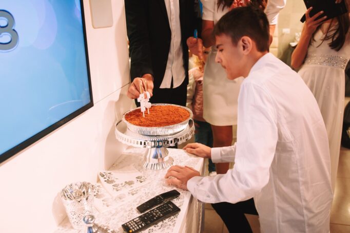המשפחה דאגה לכיבוד שהכיל כל טוב: טורטיות ממולאות, פריקסה, לחמניות, סלטים ובכלל כל אוכל שהוא טעים בפני עצמו ובעיקר מגרה את העין, כמובן שהייתי חייב לתעד את האוכל כחלק מן האירוע וגם היה שלב בו הנער נשף על הנרות בעוגה שאפו לכבודו הרי בכל זאת מדובר ביום הולדת, והיה לי חשוב להעביר גם את זה בסרטון לאחר כל החלקים הפורמליים בטקס