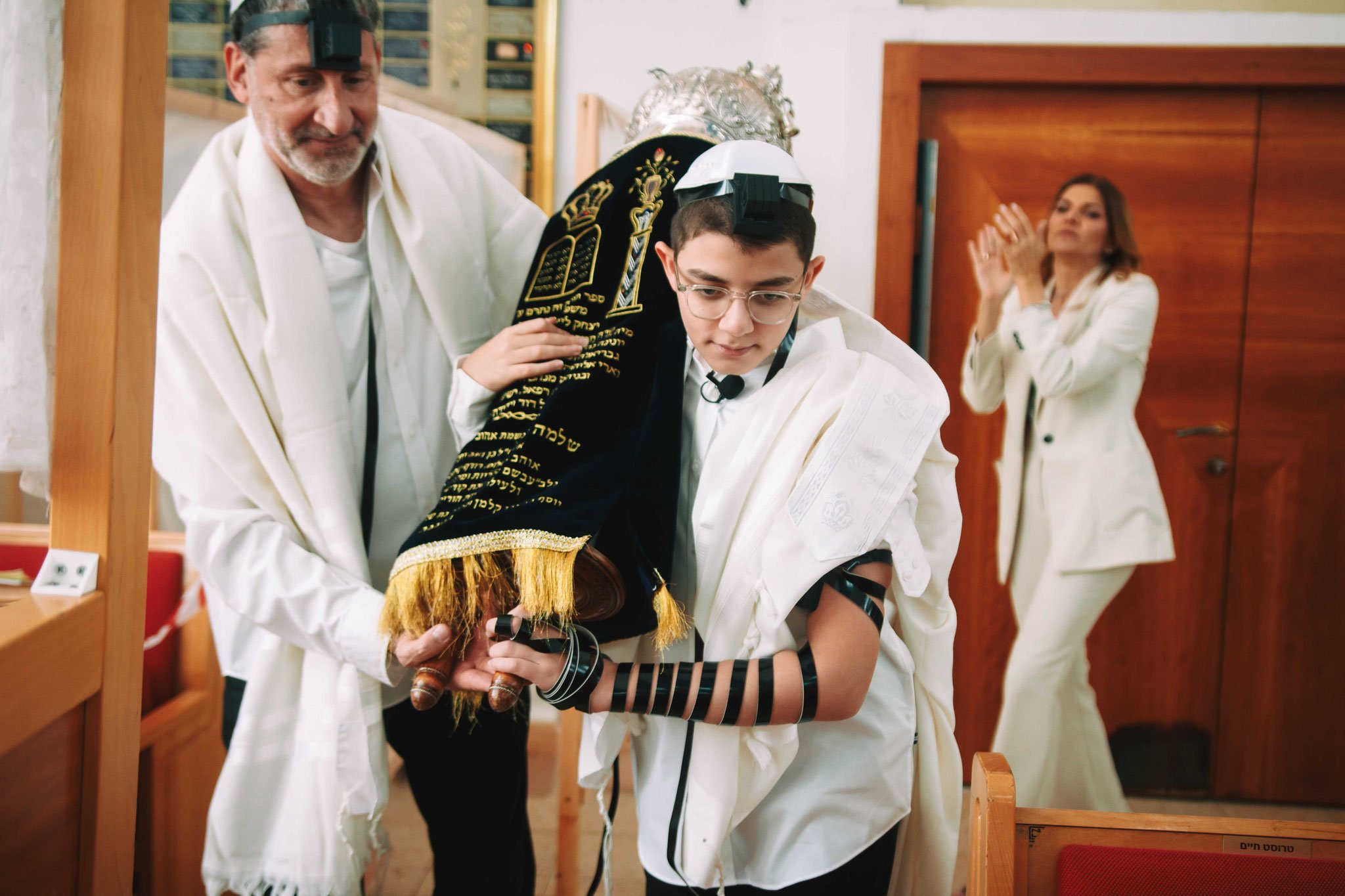 בצילום הווידאו החלטתי לאחד הצגת בית הכנסת כשהוא ריק להציג בראש ובראשונה את הנער, האירוע שלו והוא זה שצריך לבלוט בכל הסיפור, והאמת? זה גרם לי להתרגש, עצם המעמד של הקריאה בתורה. הרב פתח את הארון בו עמדו ספרי התורה, ונדהמתי לגלות איזה ספרים מדהימים עומדים שם, מעוטרים, עטופים בבד כחול ושמורים בזהירות יתרה, את ספר התורה הציג הרב בפני כולם תוך כדי שאחד הנגנים תקע בשופר. רגע התעטפות בתורה הוא הרגע שמרגש את המשפחה, ושם אף עין כבר לא נשארה יבשה. ראו את ההתרגשות מסביב, הנחת התפילין המקצועית של הנער הובאה לידי ביטוי בסרטון. כשאתה מצלם קרוב לנער אתה מרגיש אפילו עוד יותר את הסמליות והחשיבות של הטקס. והקריאה עצמה בכל פעם מחדש מרגשת אותי כצלם לבר מצווה, אני מצלם רגעים חשובים להם התכוננו הרבה זמן מראש ואסור לפשל, צריך לקלוט במצלמה את כל הקריאה. ואיך אפשר בלי הסוכריות? בתור צלם עושים הכל כדי לברוח מתקיפת הסוכריות , אבל מצלמים אותן בתור ה-חלק שכולם יודעים שעומד לבוא