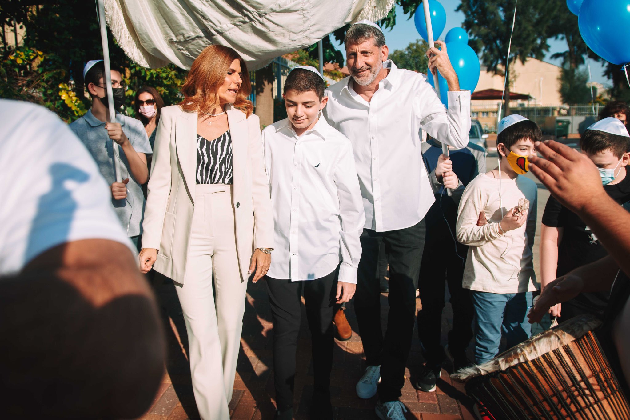 את הנער מחוץ לבית הכנסת ההורים ליוו מקדימה עם המשפחה מאחורה כשמחזיקים מעין חופה קטנה עם דגל שמסמל את העם היהודי, בצבע בז', הם ליוו את הנער עם בלונים בצבע תכלת. הפרכת הבלונים שקרתה הייתה מרגשת, כל האורחים ביחד התאפסו ונעמדו בשורה מסודרת והצטלמו יחד, מפריכים לאוויר את הבלונים שמסמלים את יום הולדתו של הנער ומעבר לכך, את השחרור שלו לחייו הבוגרים, גם את הבלונים עצמם בשמיים לא יכולתי לפספס