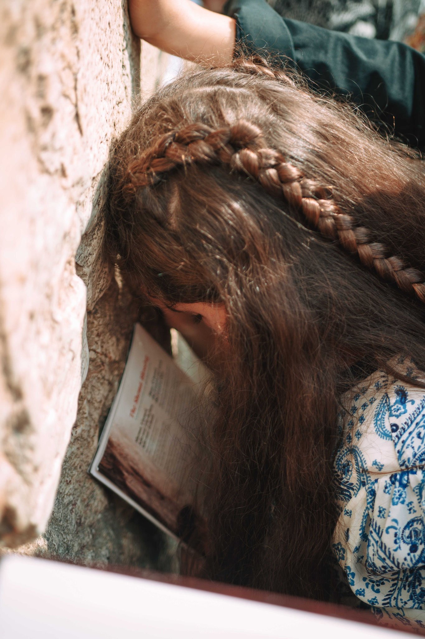 בהמשך הגענו לכותל עצמו בו המשפחה יכלה להניח את הפתקים אותם כתבה במיוחד, והילדה יכלה להתפלל אל מול הכותל הקדוש