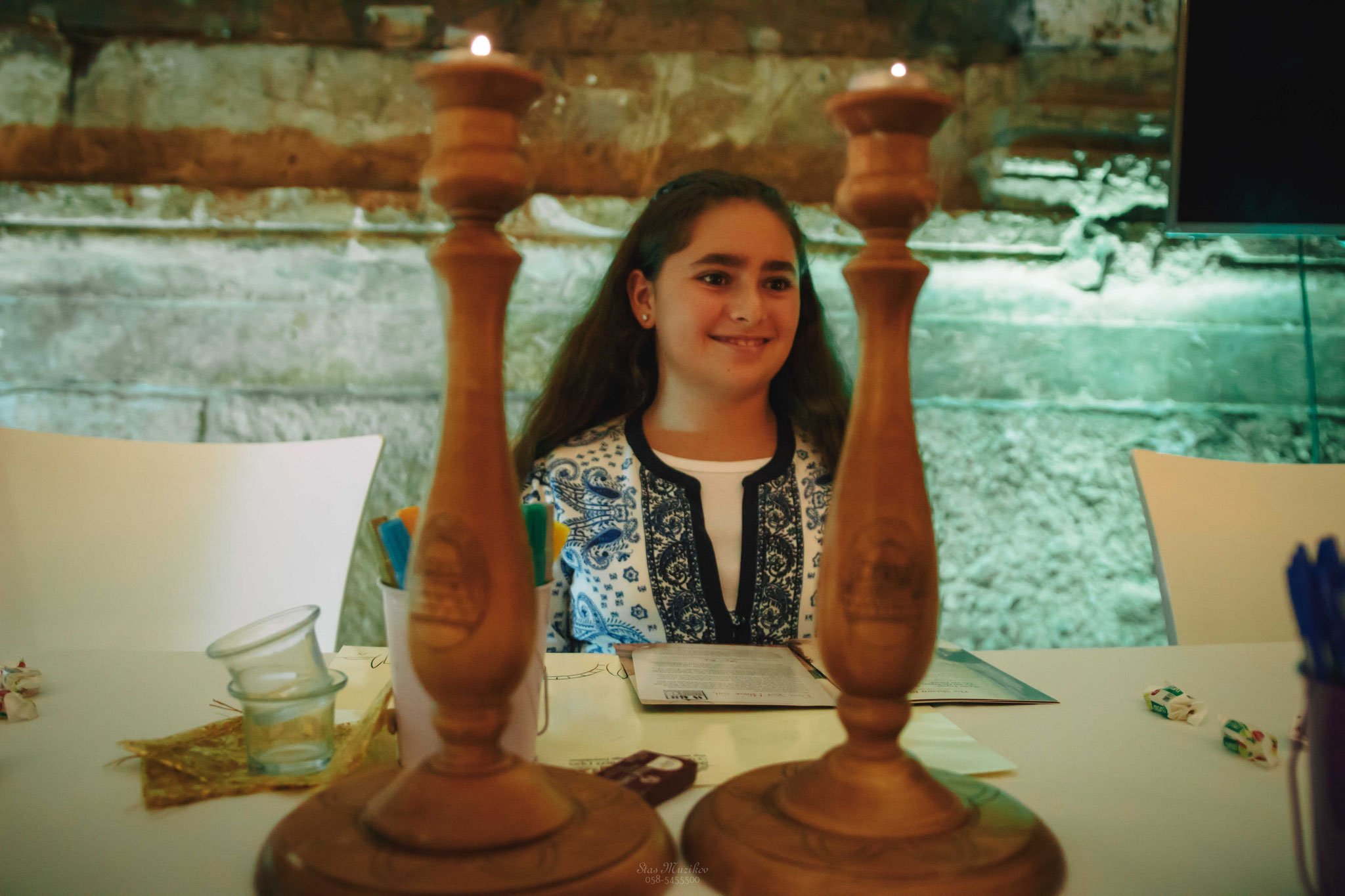 אחת האטרקציות בהן בחרה המשפחה הייתה לגשת למנהרות הכותל לסיור, שם גם חיכה שולחן ערוך במיוחד למאורע, דפים בהם יכלו לכתוב האורחים את המשאלה שלהם אותה יטמינו בקירות הכותל, וגם מדריכים שהדריכו וסיפרו את הסיפור של המקום אליו הגיעו המשפחה עם הילדה. למרות שמדובר באירוע קטן יחסית הופתעתי לגדול יותר אורחים משציפיתי. צילום הווידאו התמקד גם במנהרות הכותל, שבו הנערה בדומה לנער שקורא בעלייה לתורה קראה קטע שמסביר על מנהרות הכותל וקיבלה ברכות. במנהרות הכותל הצלחתי לצלם תמונות יפות ותיירותיות במיוחד של המשפחה והנערה בפרט, תיעדתי גם פעילות יצירה שהכינו בשביל ילדת בת המצווה וגם הענקת מתנה שרשרת