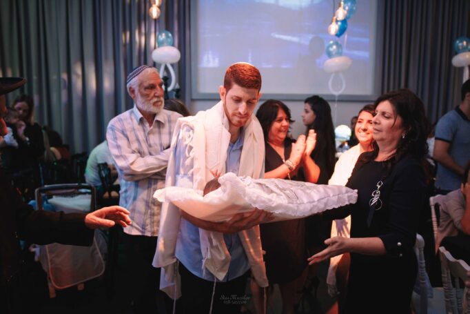 הפרגולה עם איזה שהוא ברזנט צהוב שמצד אחד אין צורך להשתמש בפלאש כי זה בחוץ מצד שני יש צורך לאחר מכן בעריכה מאוד אגרסיבית כי כל האנשים יוצאים פשוט בתאורה לא נכונה, בתאורה שגויה בצבע צהוב, יחד עם זאת יש גם צורך להיות עם "יד על הדופק" איך אומרים מסיבה פשוטה כי הקבלת פנים היא חצויה. חלק אחד הוא בחוץ בפרגולה שציינו לפני כן, החלק השני הוא כבר בתוך האולם שזה אומר שזה שתי תאורות שונות לחלוטין ויש צורך בזריזות לעבור ממצב א' למצב ב'. טקס ברית מילה יתבצע בסוף האולם ליד עמדת די ג׳יי והיתרון של כך, שמאל עמדת די ג׳יי ישנו מסך ענק שנותן תאורה טובה מאוד ממש מעל הטקס