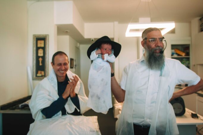 הטקס רוצה להתחיל, האבא העטוף בטליתו, והאמא אשר מברכת, מכניסים קדושה לאווירת הבית המלא שמחה, האורחים מתקשים להניח לתינוק וכל אחד ואחת רוצים את תורם להחזיקו, לחבקו ולהנות מאותו המבט אשר יישאר חקוק לנצח
