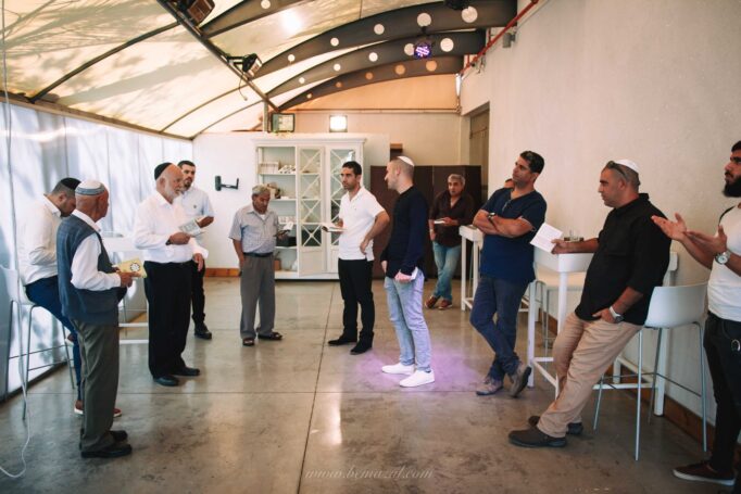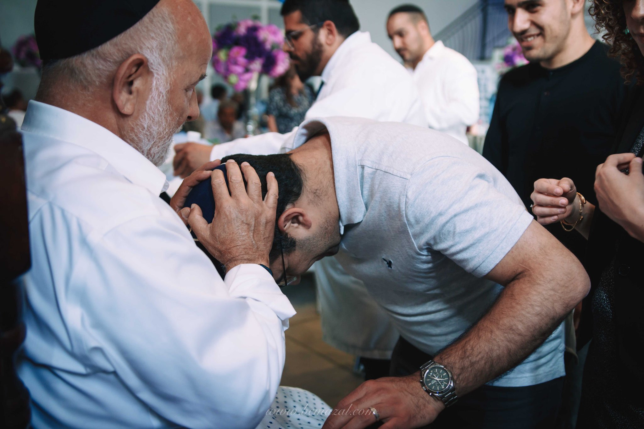 המשכתי לצלם גם את האוכל הרב שהיה במקום, ממנות הדגים לבר המתוקים שכלל סידור יפה ממפלי שוקולד לחמצוצים ועד לעוגיות בראוניז מתוקות ואפילו פירות יבשים, אשר התאים לכל מי שרק חפץ במתוק, כי היה שם הכל מהכל. בשביל הרב היה מוכן במקום כיסא חום מהוטר , וכלים שמוכנים בצד לקראת הברית עצמה. לאחר קבלת הפנים והצגת התינוק בפני כל המשפחה והחברים התחיל הטקס, המלא בתפילות, התעטפות בטלית, הברית עצמה והברכות לאב ולתינוק ושתיית כוסות היין האדום