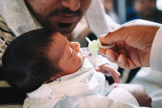 וכך הייתי הצלם לברית מילה באולם "סאלוט אירועים" ברחובות. המקום מעוצב באופן מודרני, בעל תקרות גבוהות יחסית עם קיר ריבועים אפור. ישנה רחבה נפרדת לצורך הפרדה בין נשים וגברים למהלך תפילה. האולם עצמו עוצב עם שולחנות וכיסאות בצבע הלבן, אותו שבר סידור פרחים מרהיב בצבעים הנעים בין סגול לורוד, ובחלק מהשולחנות אפשר היה לשים לב לסידור בלונים של מוצץ בצבעים כחול לבן כיאה לבן שנולד