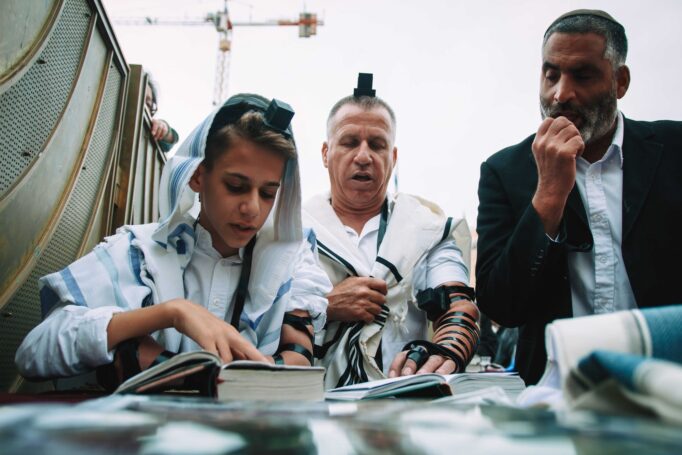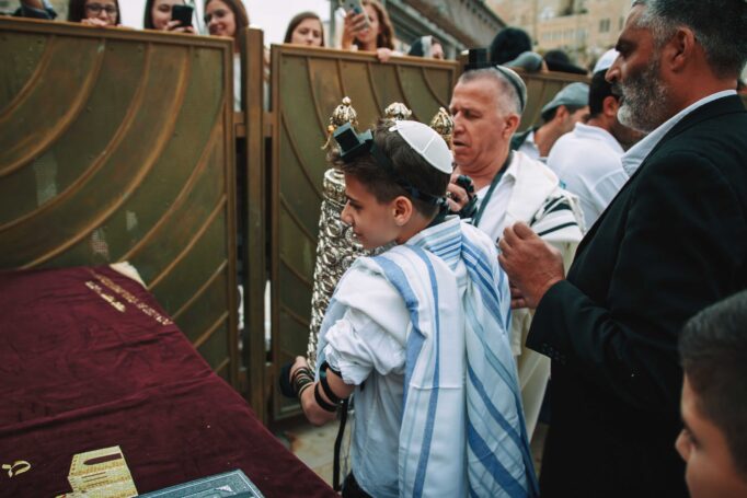 הטקס עצמו כלל בתוכו אחיזה בספר תורה סגור המעוטר במעטפת כסופה שהאבא עזר לנער לסחוב אל עזרת הגברים בכותל, האב והנער התעטפו בטלית והיה רגע מרגש בו האבא עזר לבנו לשים את התפילין וממלמל ברכה מהלב שבקושי רואים על שפתיו