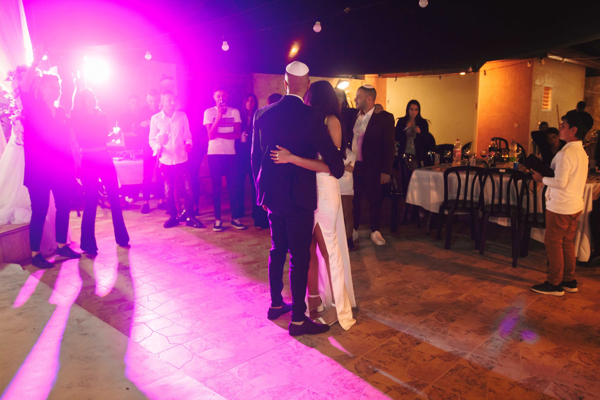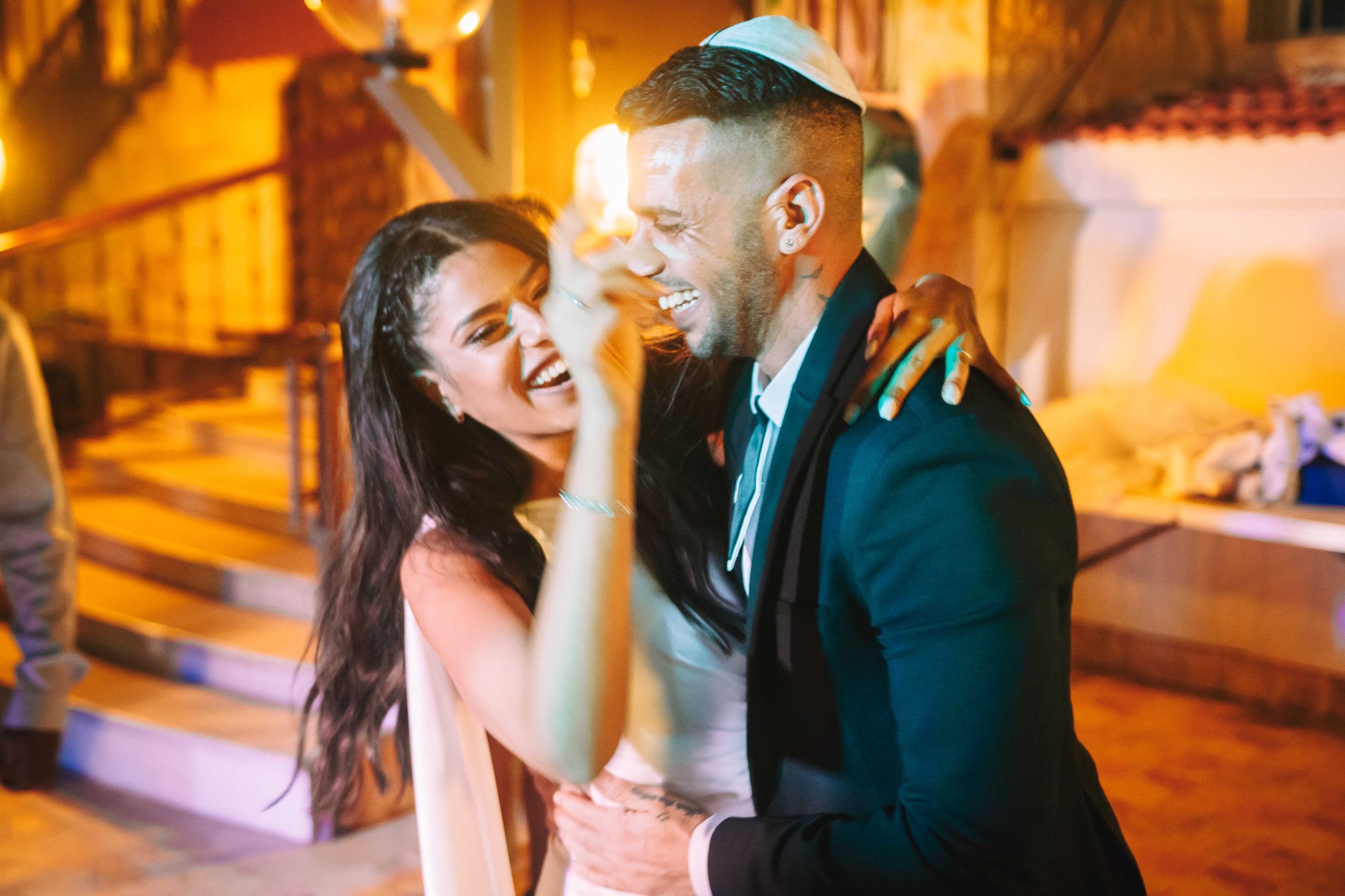 החתונה עצמה התרחשה בבית כנסת בראשון לציון. התמקדתי בצילום הכתובה, הטבעות, הליכת הכלה עם המשפחה בחצר, וכניסת החתן והכלה אל עבר החופה כשהכלה מכוסה בהינומה, תוך כדי קריאת הרב את הכתובה והעברתה לאם הכלה. את סרטון החתונה ערכתי בהתאם, כיאה לחתונה מהאגדות הביאו אורות מתחלפים לחתונה שתרמו לקסם שלה ולצילומים בחדר העריכות כמעט ללא מגע בצבעים שלהם. כל הריקודים, קבלת הפנים, וצילומי המשפחה נערכו בבית הכנסת בראשון לציון בו נערכה החתונה. היה לי חשוב גם לתעד את הריקודים במצלמה, ובעיקר להתמקד ברגעים של שבירת הכוס מתחת לחופה, שתיית כוס היין, הברכות של הרב, הריקודים של החברות של הכלה עם הכלה, הריקודים של החתן עם החברים שלו, רגעי השמחה והצחוק, ובעיקר- ההתרגשות