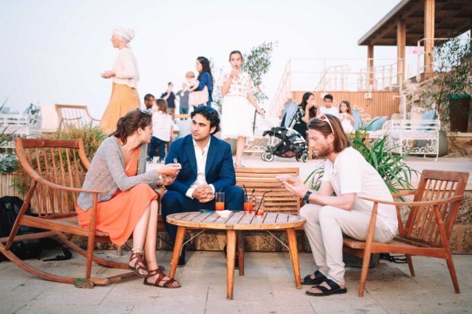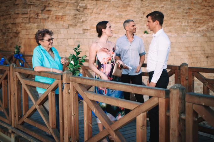 תחילת האירוע דאגתי לתעד את הזוג המאורס לצד הנוף הפתוח בחוץ, לצד קיר עתיק עם גשר בעל קישוטים ירוקים שכללו צמחים וסרט כחול לקישוט לחתונה שמוסיפים גוון לטבע הדומם, בהמשך ציורים לצד הים הכחול והמרהיב של החתן והכלה לבד ואחר כך צילומי סטילס רחבים שמציגים את המשפחה כולה יחד עם החתן והכלה כצילום רחב וגדול, כשלצד הים הכחול עמדו אנשים שלבושים באופן מהודר מה שלא רואים בדרך כלל לצד חוף הים, מה שגורם לתמונות להיות מיוחדות יותר וחגיגיות יותר, לאחר מכן נכנסו לתוך המתחם עצמו, שמתי דגש גם על צילומי החתימה על הכתובה, צילום של הצעירים במשפחה יושבים בכיסאות הלבנים בחוץ לצד החופה, וגם צילומי סטילס לכניסה לחופה המיוחדת